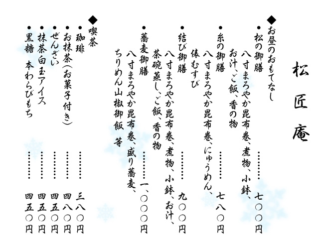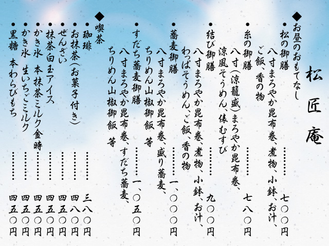 | お近くにお越しの際は、ぜひ松匠庵にお寄りください。 |