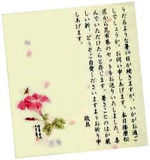 それらの人間関係を円満に保ち、人生を円滑に過ごすために、愛情を持って尊敬や感謝の心で互いに接し、 相手の祝い事を心から喜び、お悔やみ事には心より悲しみ、その心情を伝える手段として贈り物を選び、ささやかな言葉を添えて手渡して来ました。 |